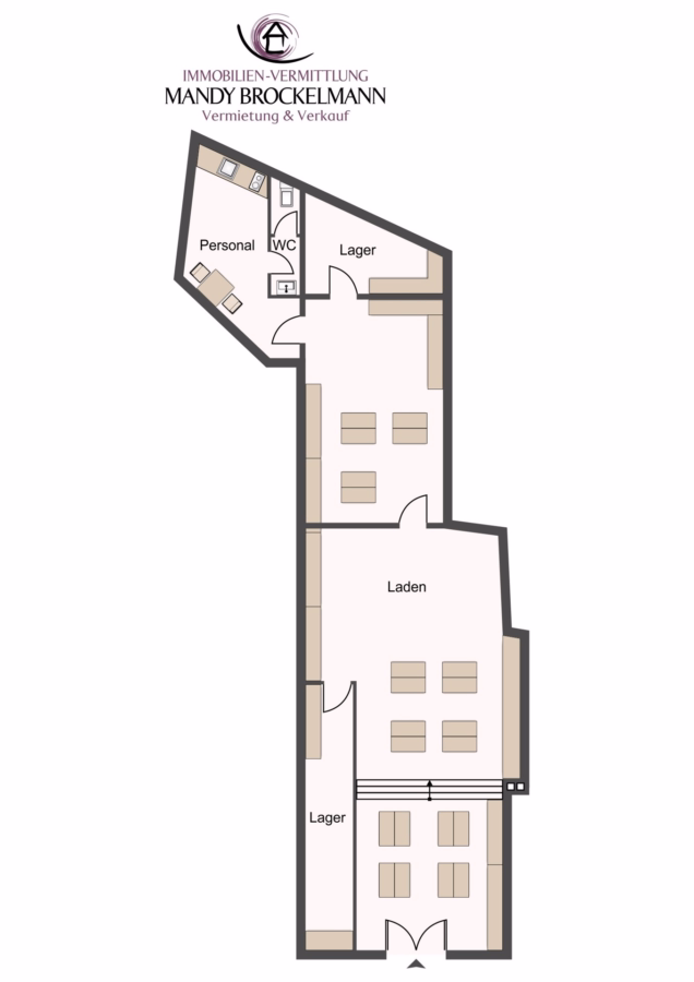 - Geräumige Verkaufsfläche mit vielfältigen Präsentationsmöglichkeiten
