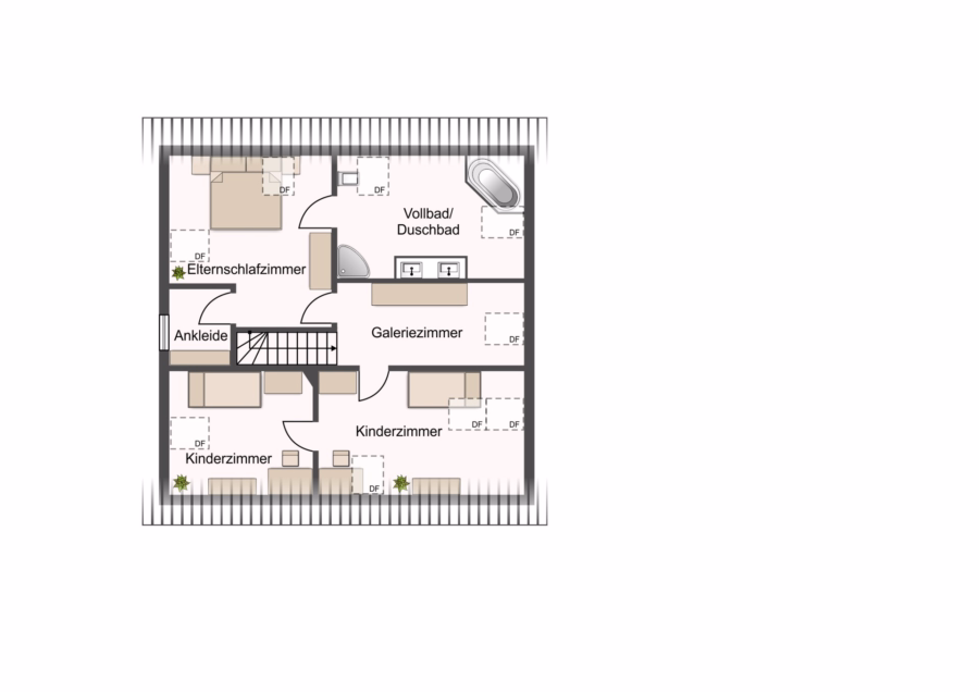 – Dachgeschoss mit offenliegenden Balken und Ankleidezimmer