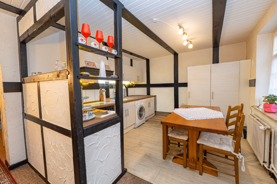 – gemütliche Küche mit Esstischmöglichkeit und sichtbarem Fachwerk