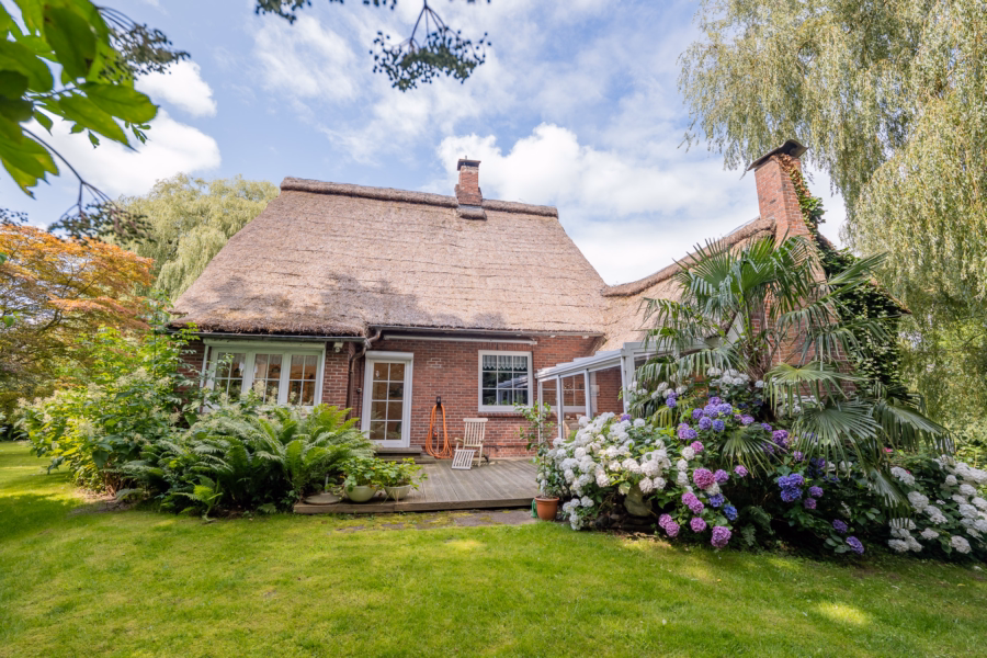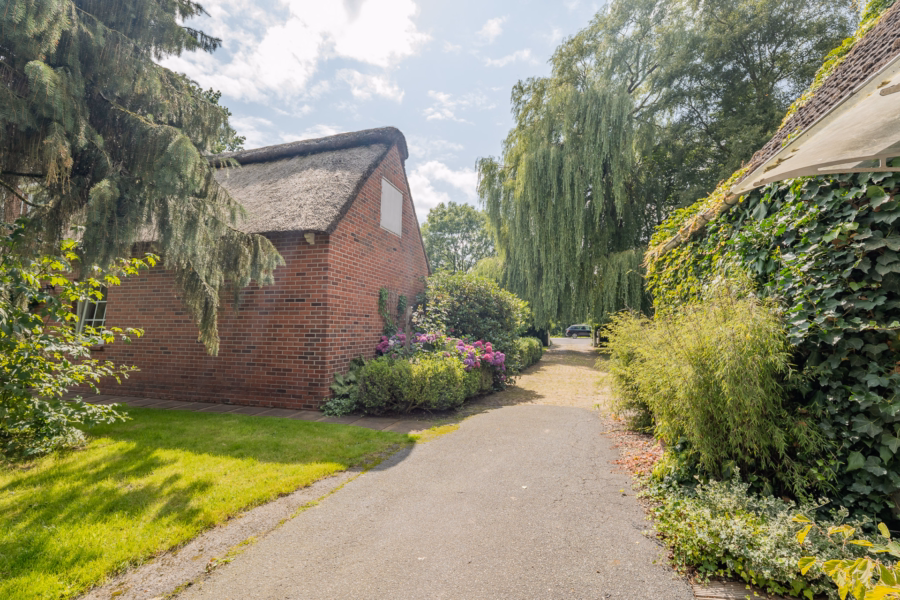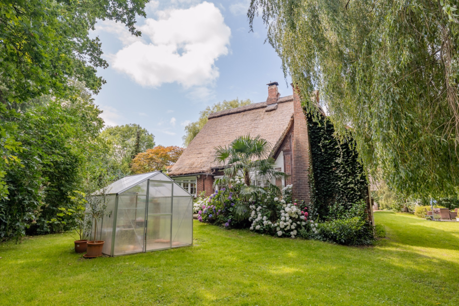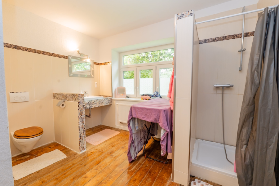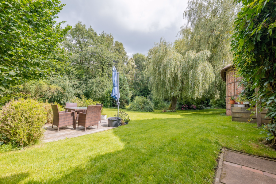 Der große Garten ist ein echtes Highlight: alter Baumbestand, liebevoll angelegte Spielflächen und ein idyllischer Naturteich schaffen eine besondere Atmosphäre, in der sich Ruhe und Leben wunderbar miteinander verbinden lassen. Hier findet jeder seinen Platz – ob mit Kindern, Gartenliebe oder dem Wunsch nach Rückzug in die Natur.