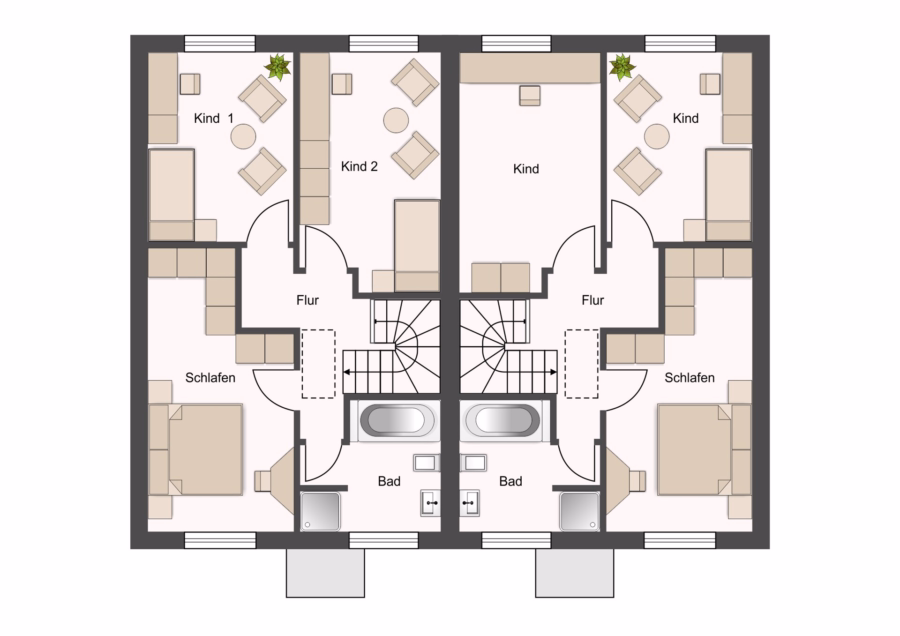 Doppelhaus 1 (2 Einheiten, je ca. 125 m², 4 Zimmer)