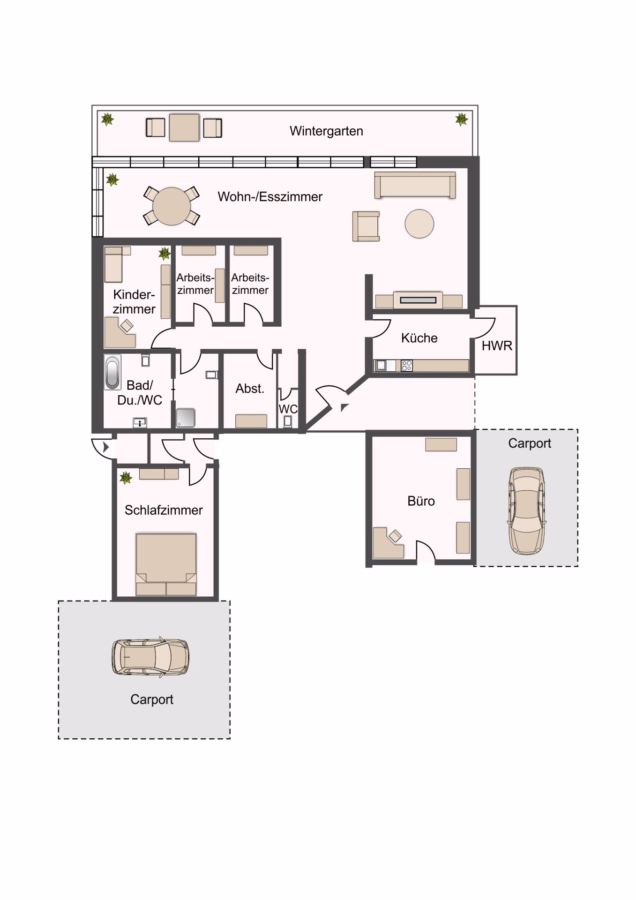 - Einliegerwohnung (ca. 42 m²) & Büroeinheit (ca. 35 m²)