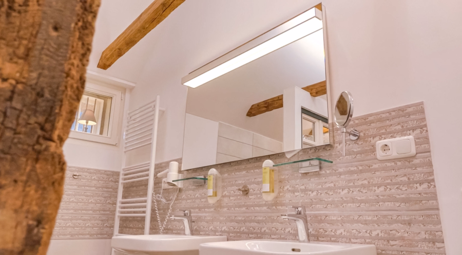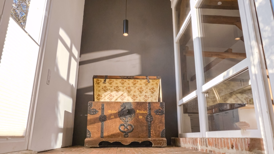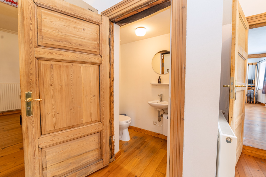 Die zweite Wohneinheit wird derzeit als Ferienwohnung genutzt und wurde 2019 umfassend modernisiert und renoviert. Dabei wurden die alten architektonischen Elemente beibehalten und sorgfältig aufgearbeitet, sodass diese Wohneinheit ebenfalls einen besonderen Charme besitzt.