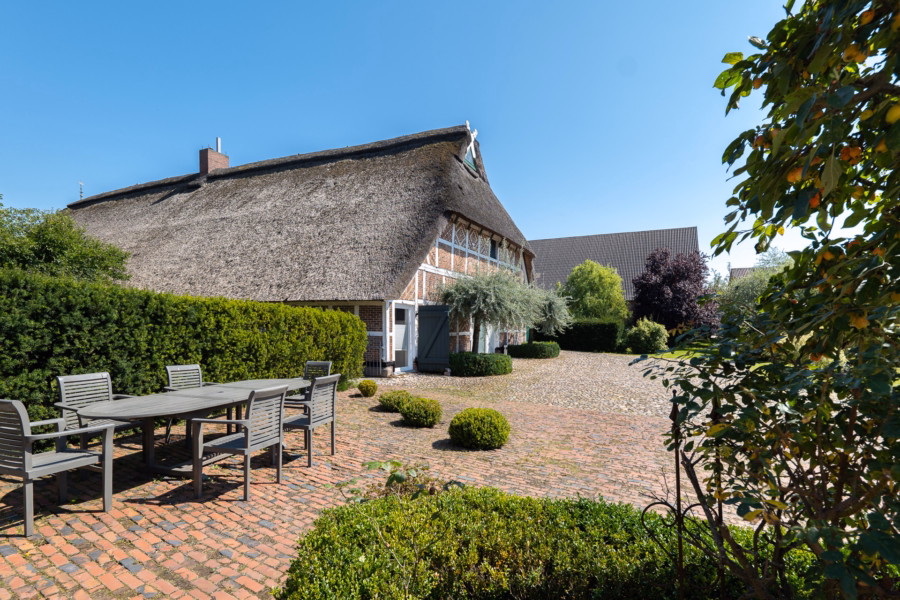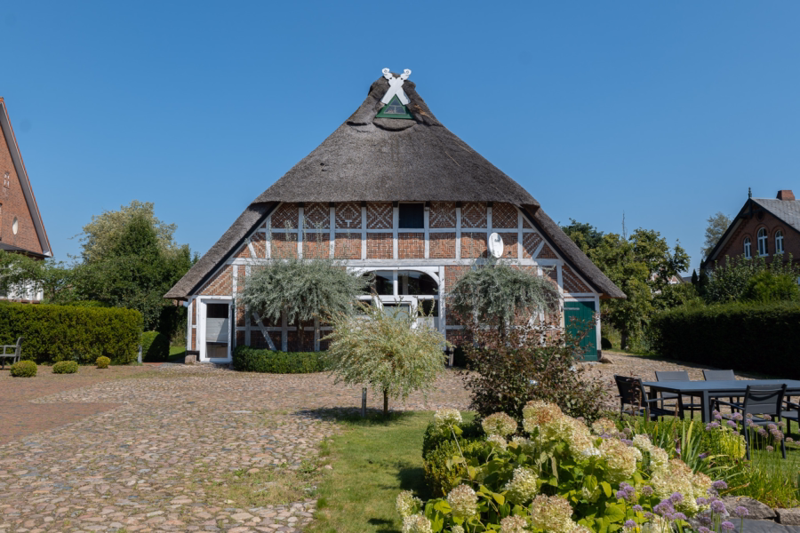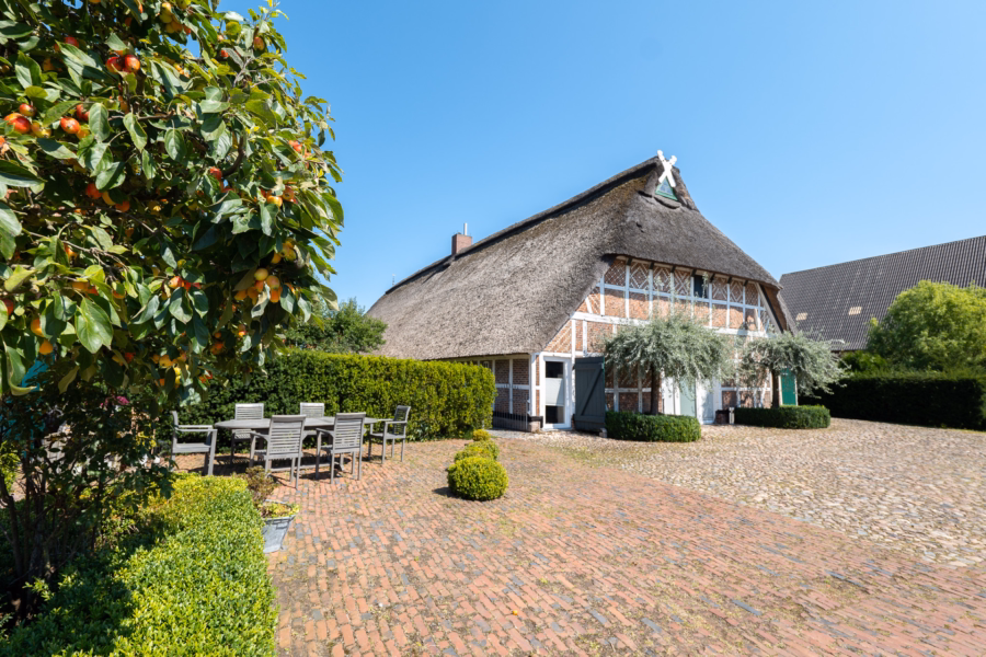 Dieses einzigartige Anwesen ist eines von nur zwei verbleibenden Häusern im Alten Land, die noch eine historische Auffahrt, Kopfsteinpflaster und eine malerische Birnenallee aufweisen.