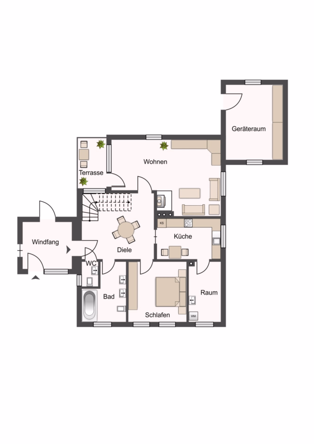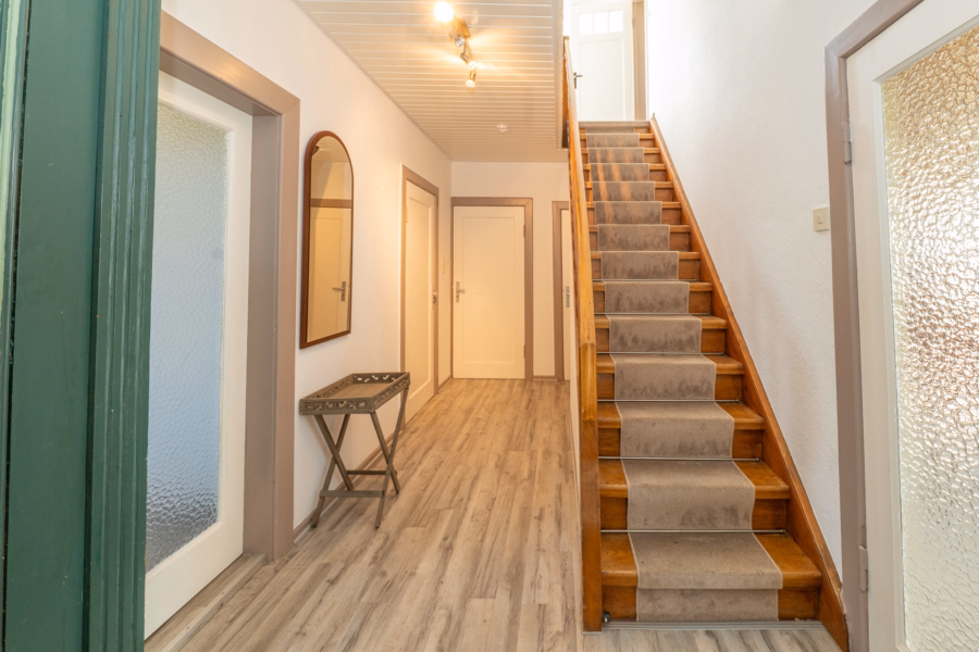- ein Wannenbad, ein separates Duschbad sowie ein Gäste-WC – Komfort auf jeder Etage