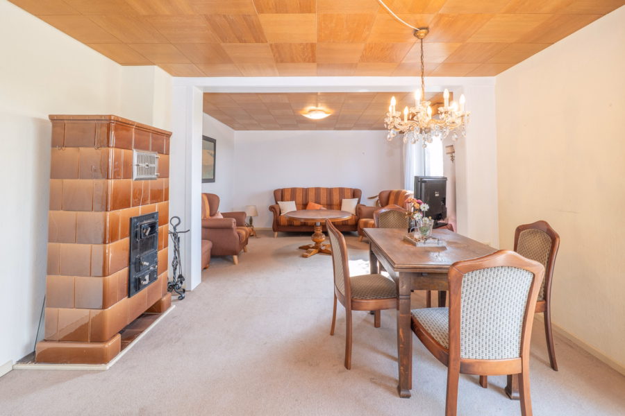 - ein gemütlicher Kachelofen als Herzstück des Wohnbereichs