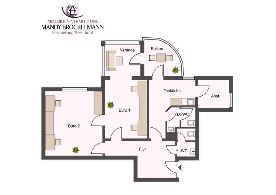 - Zugang zum Balkon sowohl vom Büro als auch von der Küche aus