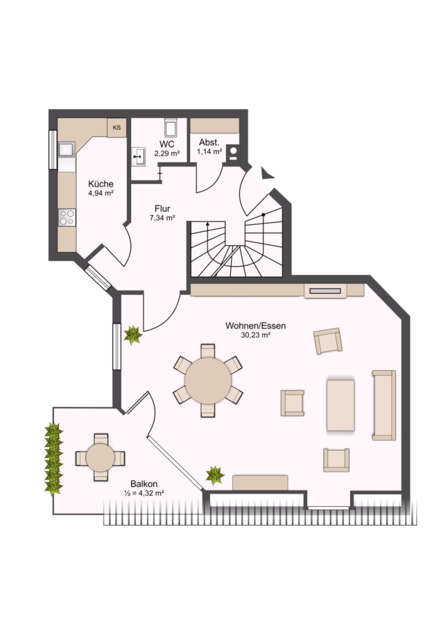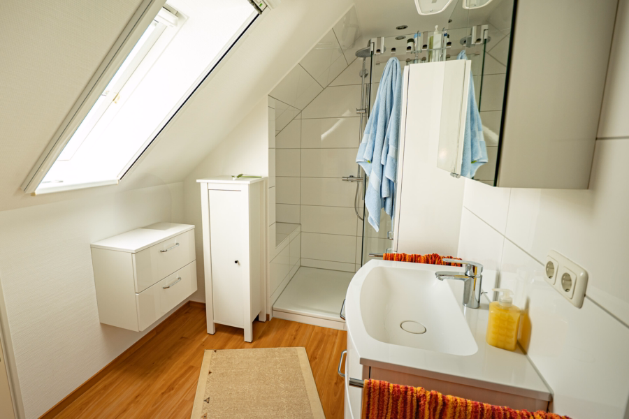 Diese großzügige Wohnung wurde 1999 in zentraler Lage in Stade erbaut und erstreckt sich über beeindruckende 120 m², verteilt auf drei Etagen und zwei Balkone mit Blick ins Grüne. Ein Stellplatz direkt vor dem Gebäude sorgt für komfortables Parken. Beim Betreten der Wohnung gelangen Sie zunächst in den Flurbereich, der auf der rechten Seite ein Gäste-WC sowie einen praktischen Abstellraum beherbergt. Der Abstellraum eignet sich hervorragend als Garderobe oder für zusätzliche Aufbewahrung. Von hier aus erreichen Sie die einladende Küche, die mit modernen Annehmlichkeiten ausgestattet ist und den idealen Raum für kulinarische Genüsse bietet. Das Highlight der ersten Etage bildet der großzügige, lichtdurchflutete Wohnraum. Hier finden ein großer Esstisch und eine gemütliche Couchecke ihren Platz. Zudem bietet der Wohnbereich Zugang zu einem der beiden Balkone, die ebenso großzügig wie die Wohnung selbst sind. Genießen Sie den Blick ins Grüne und lassen Sie schöne Abende im Freien zu einem besonderen Erlebnis werden. Über eine elegante Holztreppe gelangen Sie in die obere Etage, in der sich ein Kinderzimmer sowie ein Arbeitszimmer befinden. Beide Räume sind gut geschnitten und bieten ausreichend Platz für individuelle Gestaltungsmöglichkeiten. Auch der Ausblick ist hier besonders schön. Zwischen den beiden Zimmern ist ein modernes Bad mit einer großen Badewanne und einem geräumigen Waschtisch. Abgeschlossen wird die Ebene von einem kleinen Abstellraum in welchem eine Waschmaschine und ein Trockner Platz finden. Die oberste Etage wird durch den ausgebauten Spitzboden geprägt, der derzeit als Schlafzimmer genutzt wird. Ein zusätzlicher, praktischer Abstellraum bietet Stauraum für Koffer und Co. Abgerundet wird diese Etage von einem schicken Duschbad. Ein weiterer Pluspunkt ist der große Kellerraum, der zusätzlichen Stauraum bietet und das Angebot perfekt abrundet. Auf Wunsch können auch Möbel erworben werden, um den Umzug noch komfortabler zu gestalten.